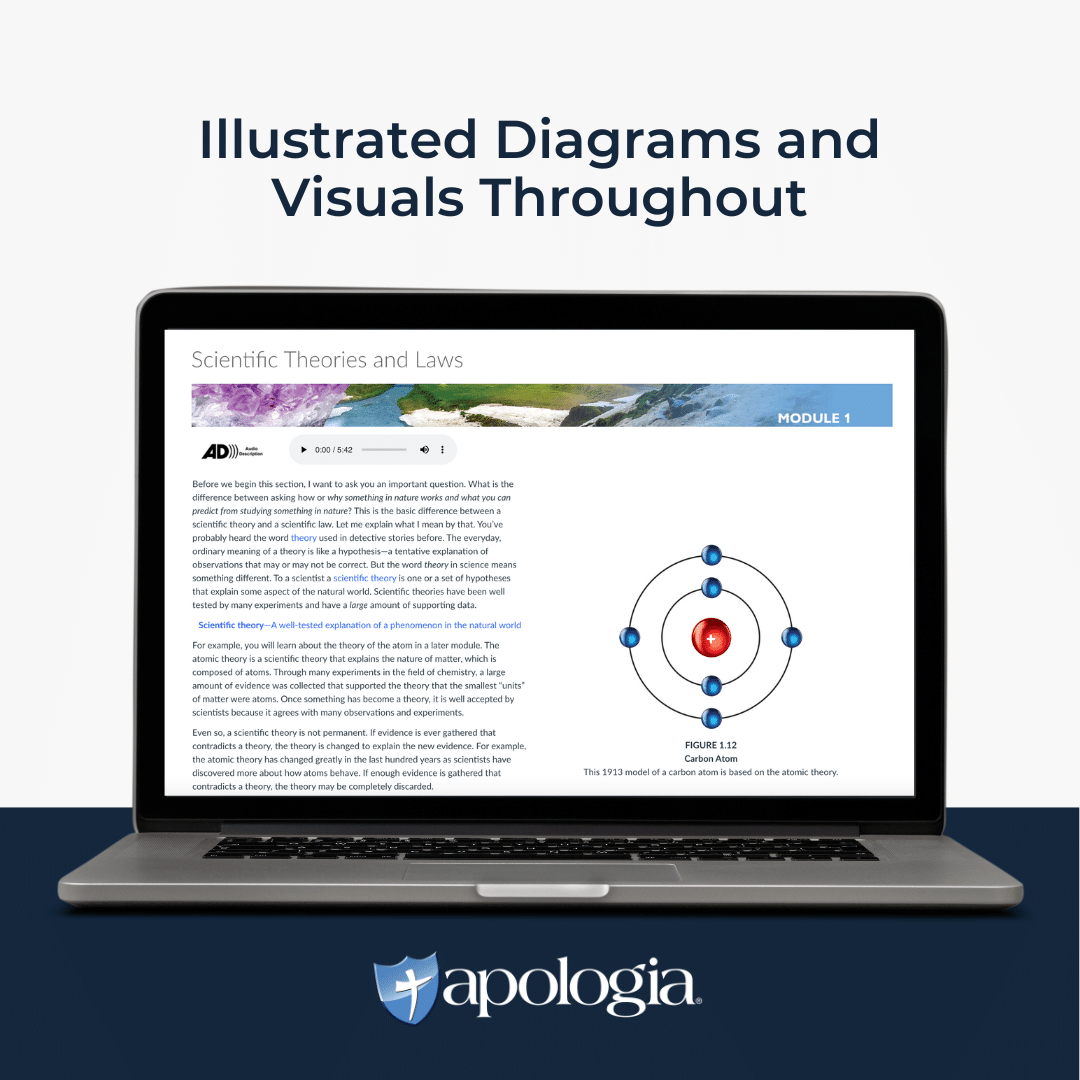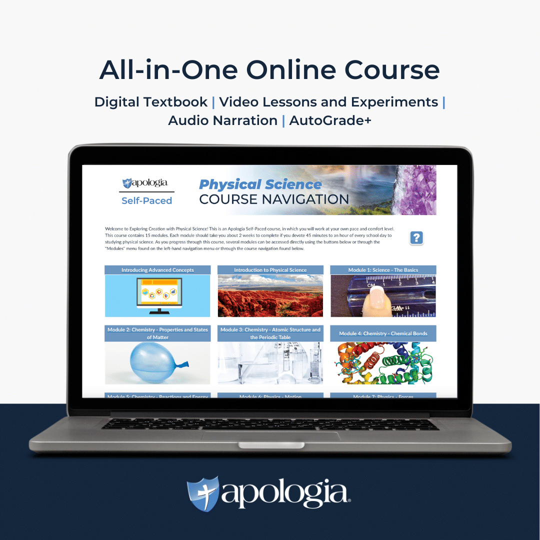Apologia’s online homeschool Physical Science self-paced course provides students with self-directed learning tools to ensure they thrive and master the concepts of physical science throughout this course.