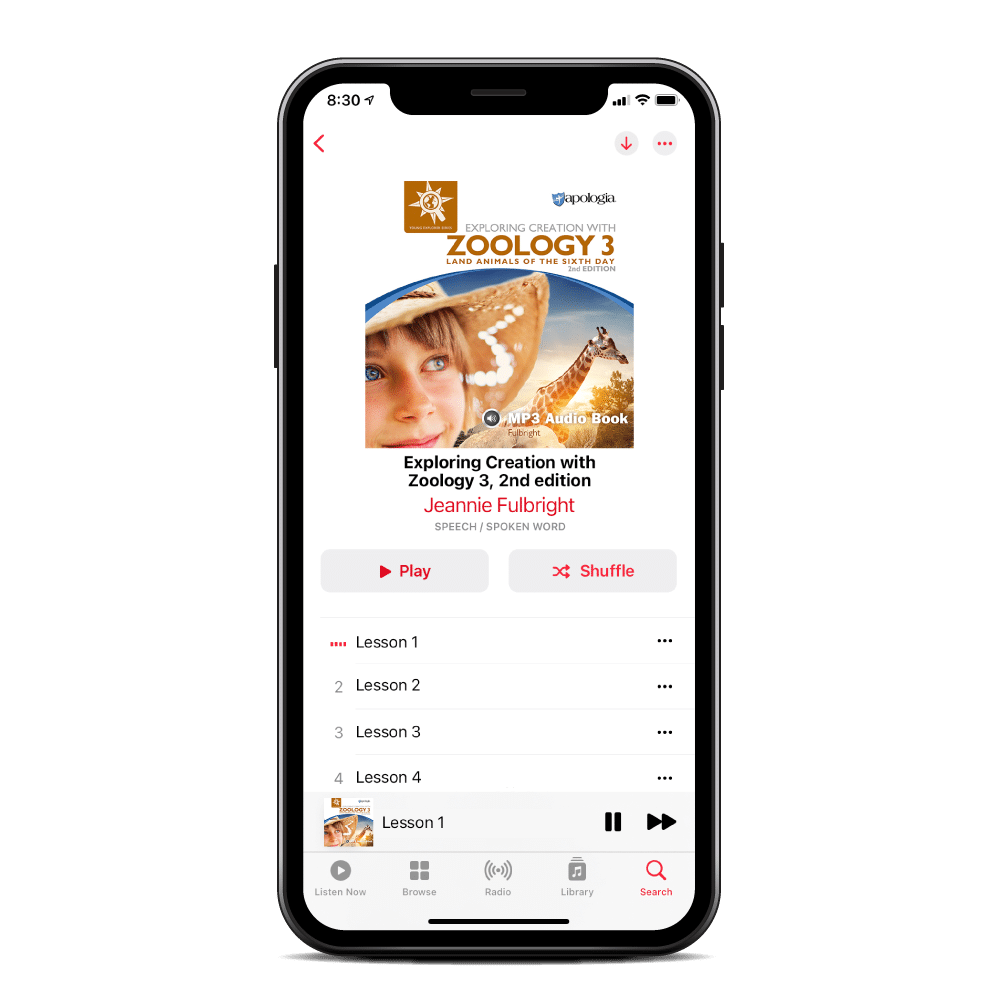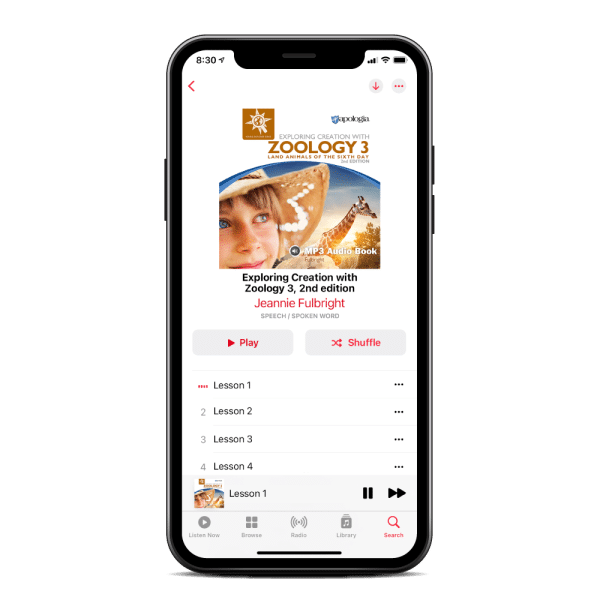 - Streaming – Listen to the streaming audiobook in your Apologia account.